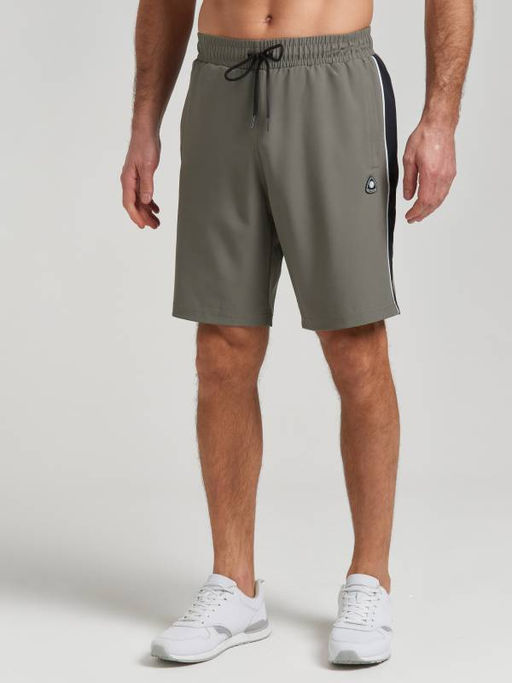 Оригинальные шорты из легкой плащевки.По боку контрастная вставка, переходящая в кокетку задней части шорт. В швах боковых вставок и передней части шорт белый кант. Карманы прорезные с планками. Пояс шорт по талии регулируется шнуром. Под левым карманом шеврон с фирменным логотипом.
