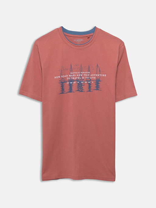 Bisiklet Yaka K?sa Kollu Bask?l? Penye Erkek Ti??rt