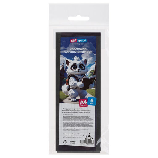 • Цена за 2 шт. Закладки-ляссе самокл. ArtSpace, графит, 6шт. 12*370мм (378007) для формата А4