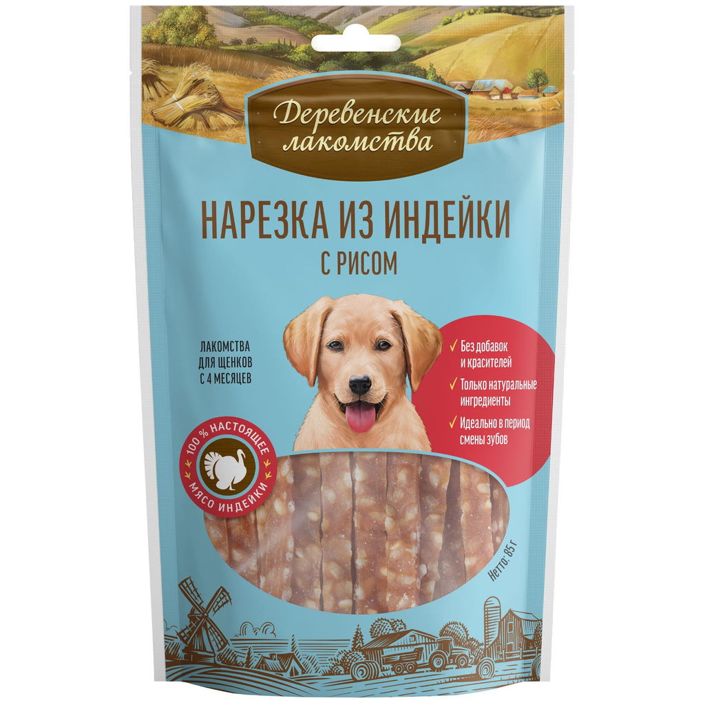 Нарезка из индейки с рисом для щенков