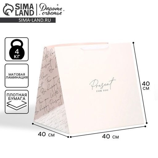 • Пакет подарочный квадратный, упаковка, Present with love, 40×40×40 см