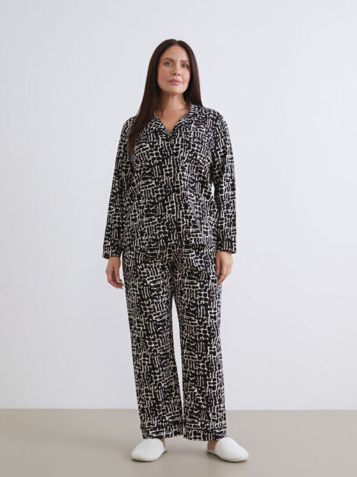 B?y?k Beden Desenli Kad?n Pijama Tak?m?