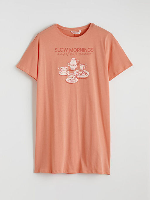 Bisiklet Yaka Bask?l? Kad?n Gecelik
