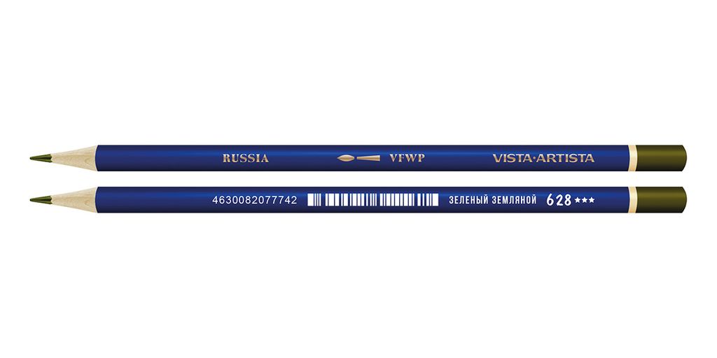 VISTA-ARTISTA Fine VFWP Акварельный карандаш заточенный 6 шт. 628 Зеленый Земляной (Green Earth)