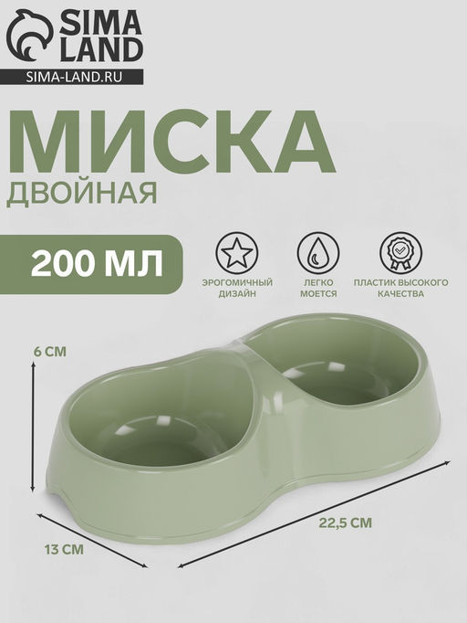 • Цена за 2 шт. Миска двойная "Мур-мяу", 200 мл, 22.5 см × 13 см × 6 см, пластик, цвет фисташковый
