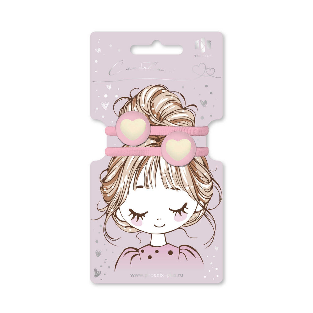 Набор резинок для волос арт. 71852 / 10 СЕРДЕЧКИ (в наборе: 2шт., б/р, вулканизированная резина, полиэстер, полиметилметакрилат, цвет: розовый, молочный, подложка из мелованного картона + ПЭТ-пакет с европодвесом)