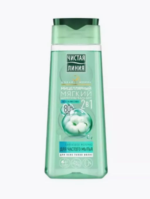Шампунь-бальзам мицеллярный Чистая линия 2 в 1 мягкий для частого мытья всех типов волос, 250 мл. Шампуни и Бальзамы Чистая линия со знаком ЭКОконтроль гарантируют экологическую чистоту и пользу входящих трав. Травы в составе продуктов Чистая линия имеют паспорт качества и проходят многоступенчатый контроль экологической чистоты. Чистая линия гарантирует эффективность: следит за соблюдением уровня активных веществ, использует только самые эффективные части растений, занимается клиническими исследованиями отвара трав. Эксперты Института Чистая линия создали коллекцию инновационных средств по уходу за волосами на мицеллярной основе. Они не раздражают чувствительную кожу головы, сохраняют ее гидролипидный баланс и не пересушивают волосы, даже при ежедневном мытье. Мицеллярный шампунь 2в1 создан для мягкого очищения волос, подходит для частого мытья. Мицеллярная основа бережно очищает, не пересушивает волосы и кожу головы. Хлопковое молочко ухаживает за волосами, смягчает и облегчает расчесывание, 80% отвара трав наполняет волосы силой. Низкосульфатный - идеален для чувствительной кожи головы. Подходит для всех типов волос.