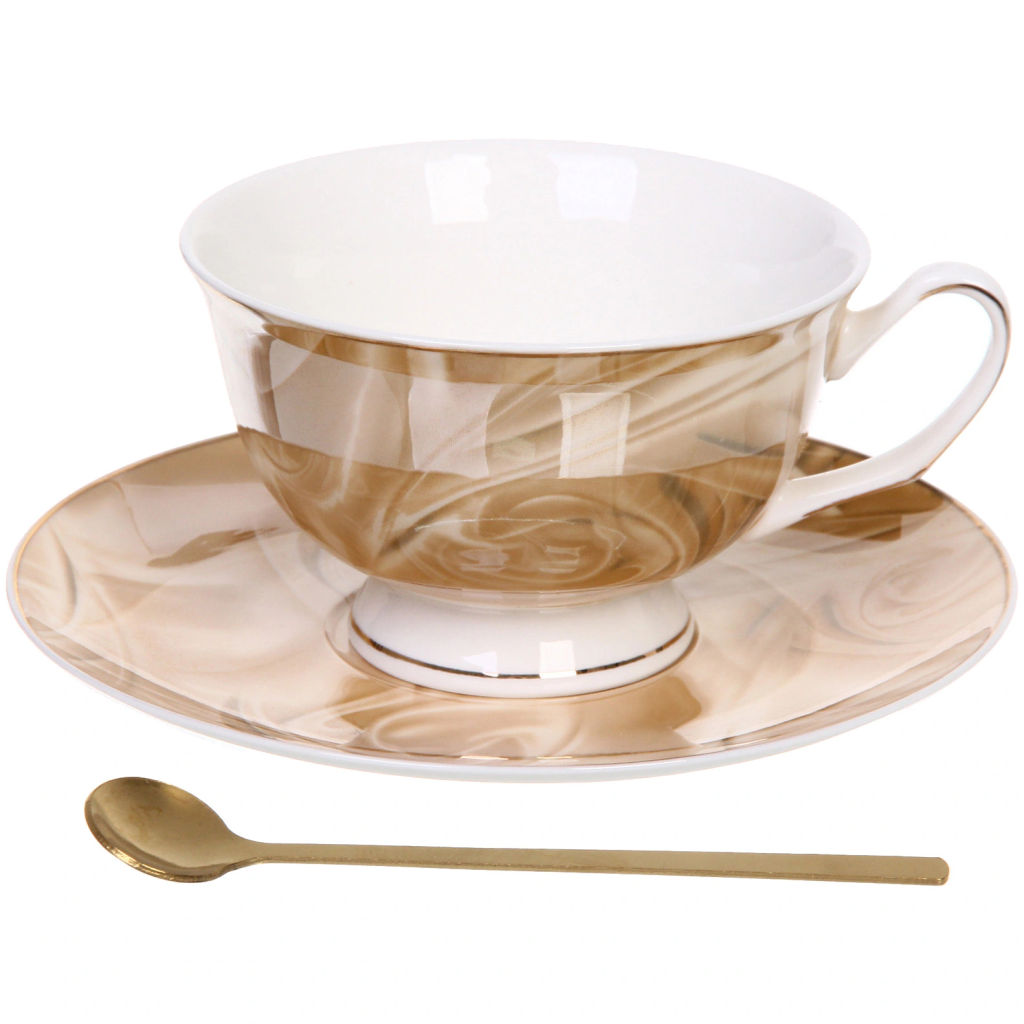 Чайная пара "Поэзия" (кружка 220мл, блюдце,ложка) бежевая