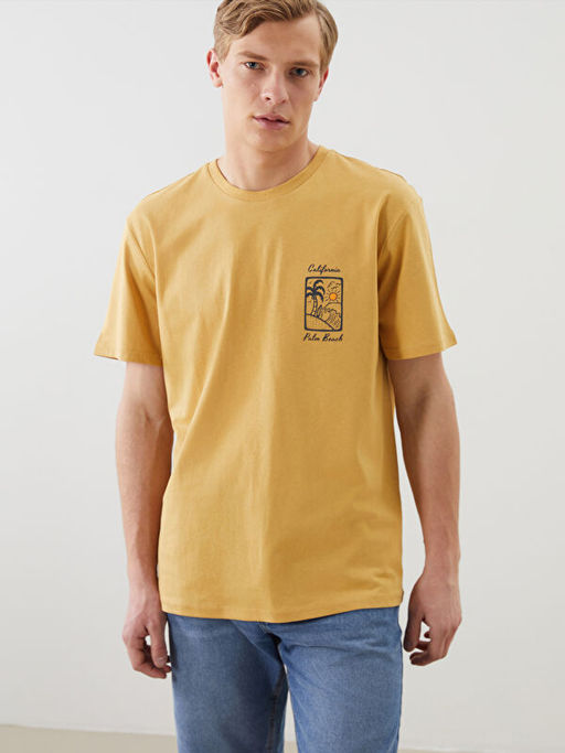Bisiklet Yaka Bask?l? Erkek Ti??rt