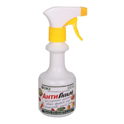 АнтиГнильприродный биофунгицид для защиты овощей, ягод и фруктов от гнилей при хранении и транспортировке. Продлевает срок хранения продуктов в 1,52 раза. Готовым рабочим раствором при помощи удобного распылителя или опудриванием порошком можно сразу, не тратя времени на разведение, обработать урожай и место хранения (погреб, ящик и т.д.). АнтиГниль не содержит химических добавок, безопасен для человека (нет срока ожидания), вы можете употреблять в пищу овощи и фрукты даже в день обработки.