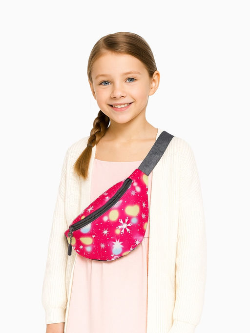 Эта детская поясная сумка станет верным спутником для прогулок и путешествий. Её компактный размер идеально подходит для ребёнка, а яркий малиновый цвет с космическим принтом нравится девочкам. Сумка удобно лежит на поясе, не сползает и не мешает активным играм.Практичность в деталяхРегулируемый ремень настраивается по длине под рост и одежду.Надёжная молния защищает содержимое от потери.Лёгкий и прочный материал полиэстер легко чистится.Вместительное основное отделение подходит для мелочей, ключей или небольшого смартфона.Эргономичная форма не создаёт дискомфорта даже при длительном ношении.Для самостоятельности и хорошего настроенияТакая сумка даёт ребёнку чувство самостоятельности — теперь у него есть своё личное пространство для важных маленьких сокровищ. Это не просто аксессуар, а персональный артефакт для приключений, который всегда под рукой. Яркий дизайн с космосом поддерживает игривое настроение и развивает воображение. Для кого: Для девочки. Длина, см: 24. Ширина, см: 6. Высота, см: 11. Количество отделений: 1. Вид застёжки: Молния. Рисунок: Да. Регулируемый ремешок: Да. Модель сумки: Поясная. Изображение: Космос. Бесплатная доставка: Да. Размеры товара: 6/11/24. Примечание: Оттенок данного товара может незначительно отличаться от фото/видеоизображения (в зависимости от настроек яркости вашего экрана)..