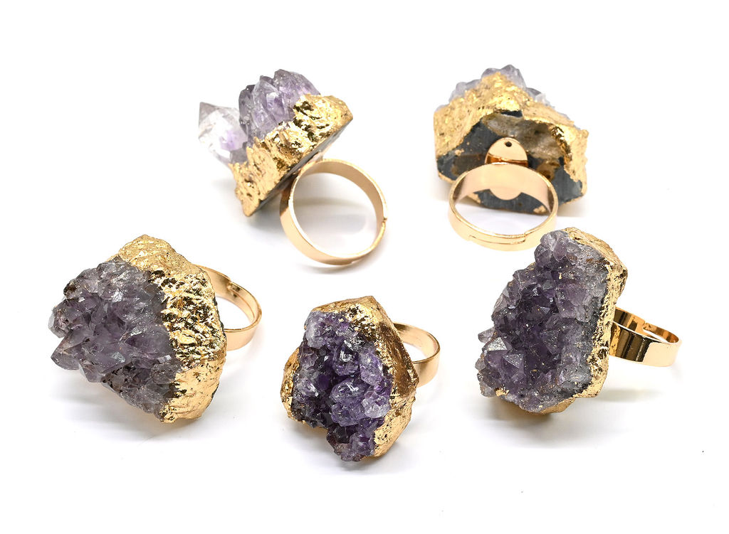 • Кольцо с друзой аметиста 27*32мм цв.золотистый