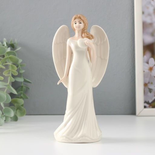 • Сувенир керамика "Девушка-ангел в белом платье с сердцем в руке" 8,5х6,2х18 см