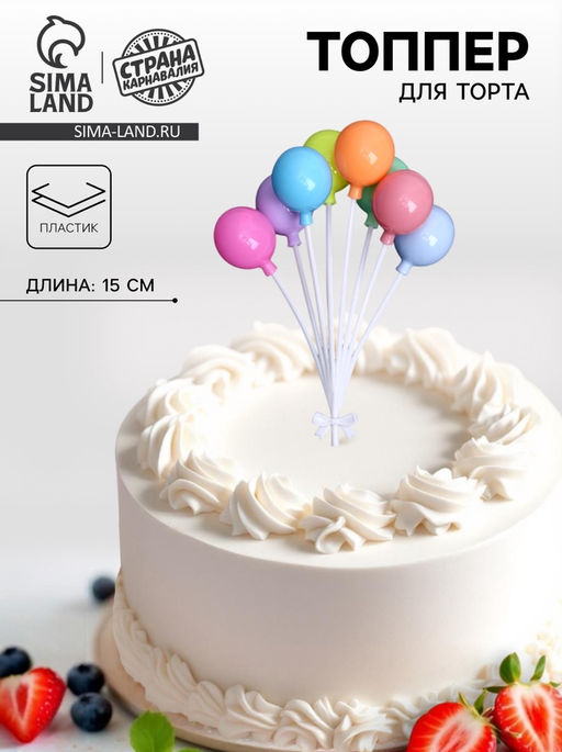 Топпер для торта «Воздушные шары» — это оригинальный элемент декора, который сделает любой праздничный торт ярче и привлекательнее. Аксессуар выполнен в виде воздушных шариков, он станет отличным дополнением для торта на день рождения, юбилей или любое другое торжество. Лёгкий и красочный топпер поможет создать праздничную атмосферу и добавит радости в оформление десерта.Особенности топпера Яркий дизайн — воздушные шары символизируют веселье и праздник, делая торт ещё более привлекательным. Универсальный декор — топпер подходит для тортов на дни рождения, юбилеи и другие праздничные мероприятия. Безопасные материалы — топпер изготовлен из экологичных и безопасных материалов, не влияющих на вкус и качество десерта. Простой в использовании — легко устанавливается на торт и добавляет эффектный завершающий штрих к праздничному столу.Украсьте ваш торт с лёгкостьюТоппер «Воздушные шары» станет отличным решением для тех, кто хочет быстро и просто украсить торт без лишних усилий. Это декоративный элемент, который сразу привлекает внимание и дарит радостные эмоции на любом празднике. Набор: Нет. Высота держателя, см: 15. Тематика праздника: Универсальная тематика. Бесплатная доставка: Да.