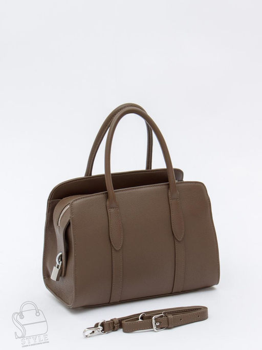 Компактная модель, выполнена из натуральной кожи. Дополнена серебристой фурнитурой. Основной отдел закрывается на молнию. Сумка носится в руке за строенные ручки или на плече, в комплекте имеется съемный ремень с регулировкой длины. Каркас полужёсткий.