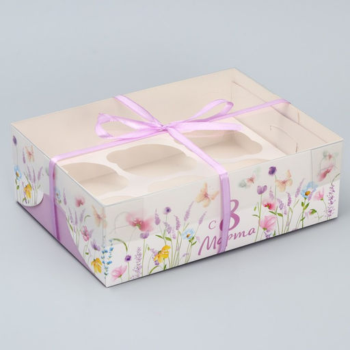 • Цена за 5 шт. Коробка для капкейка, кондитерская упаковка, 6 ячеек 8 марта,23?16?7.5 см