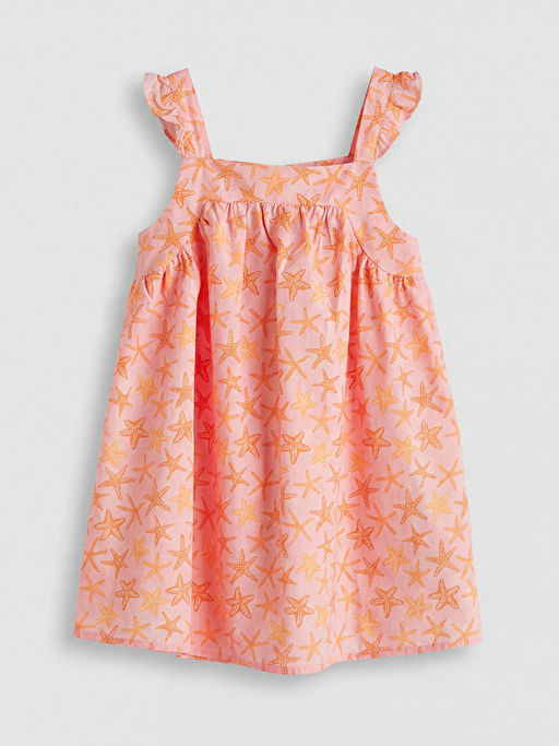 • Kare Yaka Desenli K?z ?ocuk Elbise