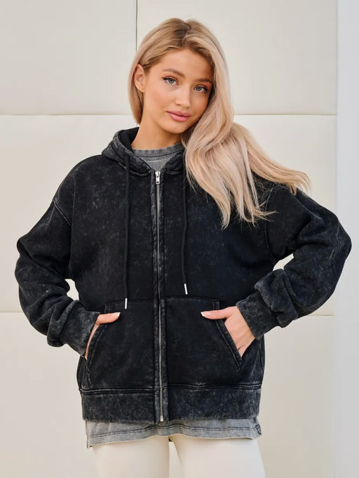 K12693 Толстовка с капюшоном на молнии OVER SIZE (плотный хлопок) ЧЕРНЫЙ