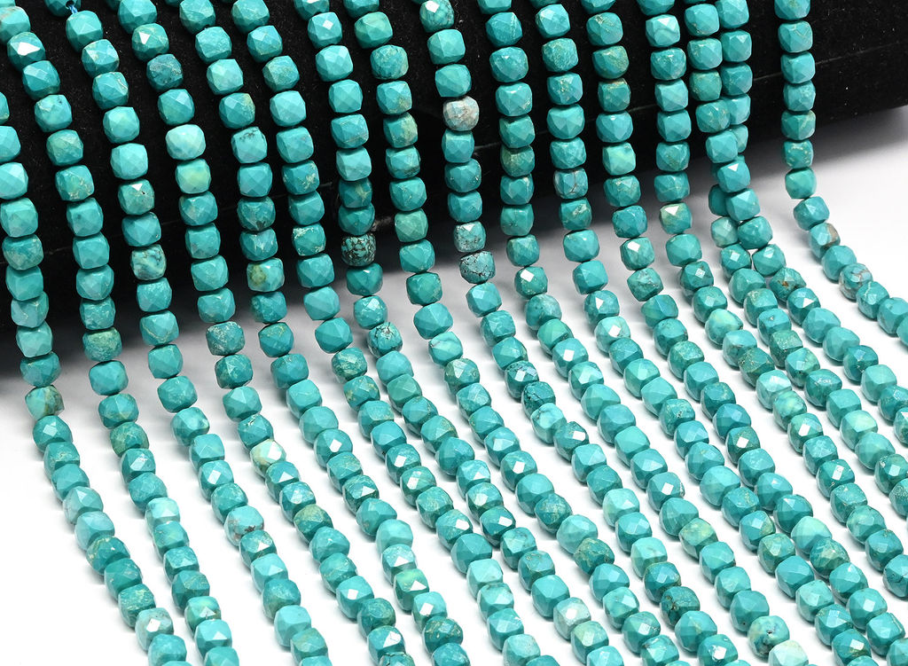 Бусины из бирюзы кубик гр.5мм, 38см, 75 бусины Радуга камня