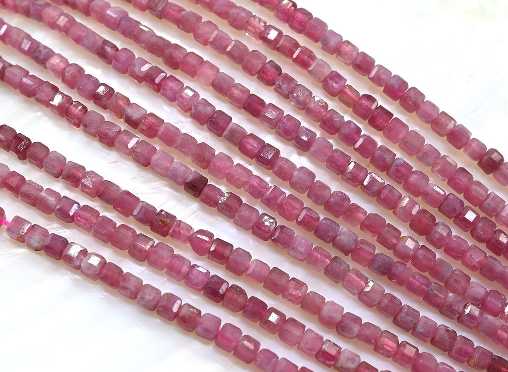 Бусины из натурального розового турмалина с ювелирной огранкой в форме кубика.