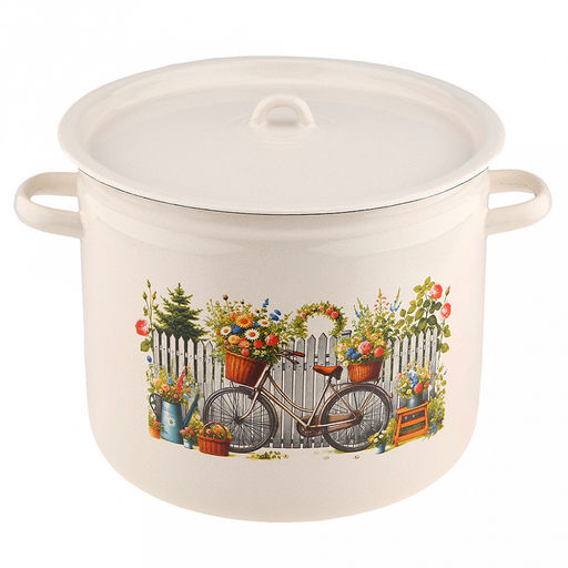• "Романтика" Кастрюля эмалированная 12л, форма цилиндрическая, металлическая крышка, металлические ручки, жемчужный (Россия)