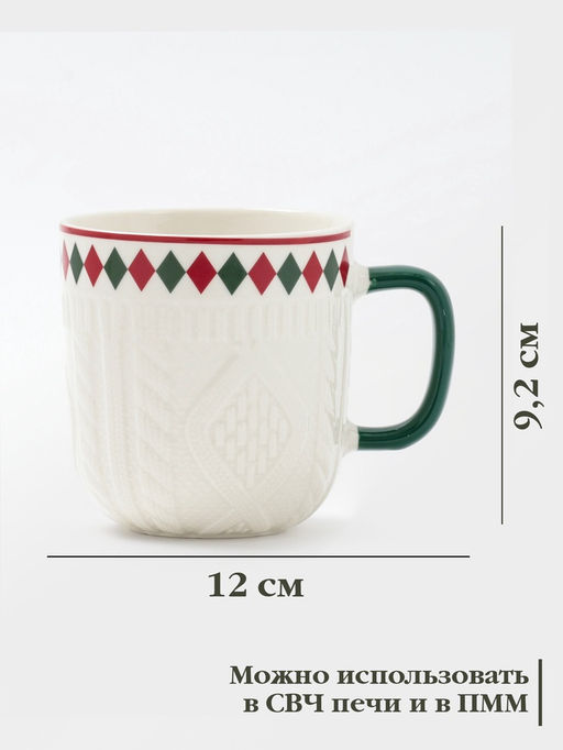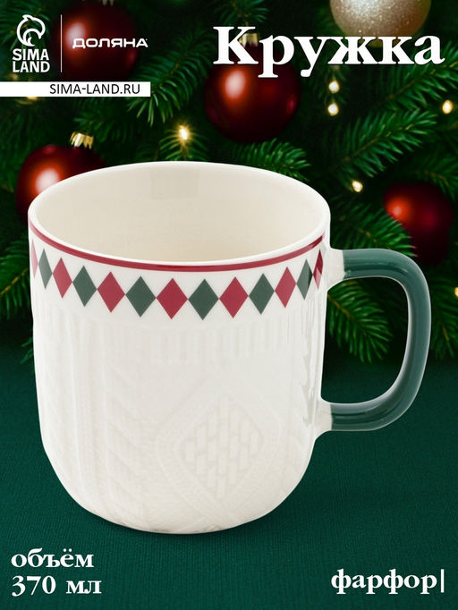 Кружка Доляна «Уютный новый год. Ромб», 370 мл, фарфор, белая