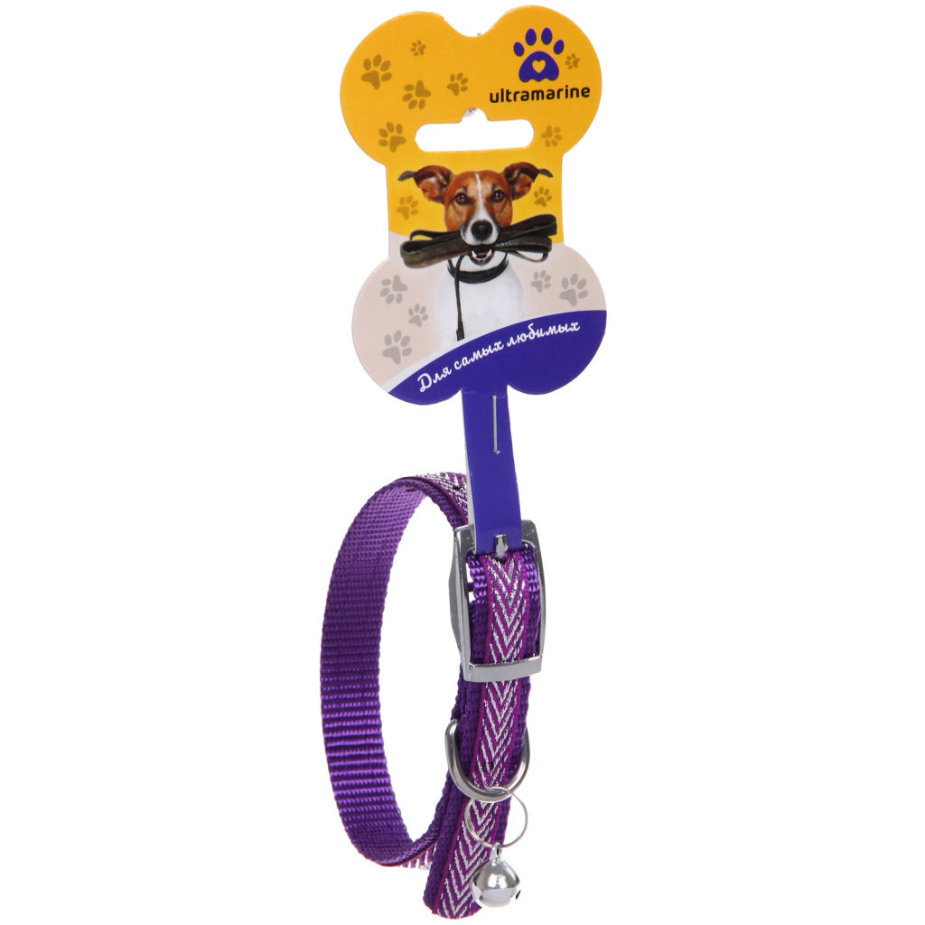 • Цена за 4 шт. Ошейник нейлоновый "Калипсо" 1,5*38см с колокольчиком, цвет фиолетовый Ultramarine