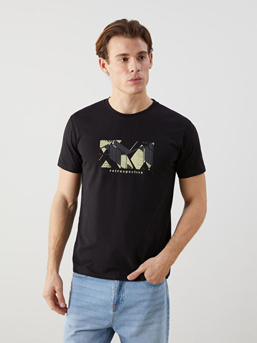 • Bisiklet Yaka K?sa Kollu Bask?l? Penye Erkek Ti??rt