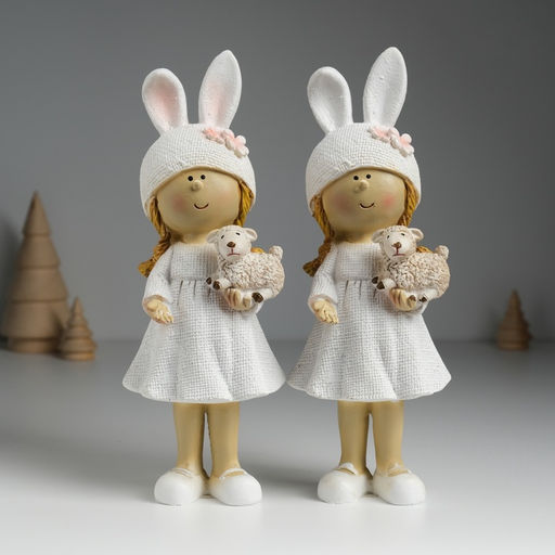 • Фигурка полистоун Девочка в шапке с ушками, с барашком, 8?6?22 см, МИКС