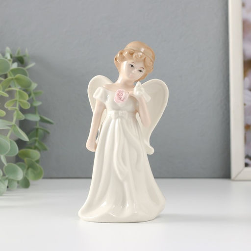 • Сувенир керамика "Девочка-ангел в белом платье с голубем" 7,5х6х14,5 см