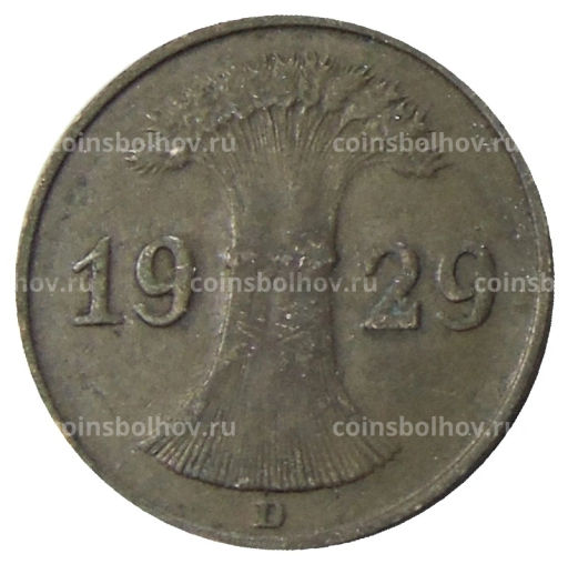 Монета 1 рейхспфенниг 1929 года D Германия