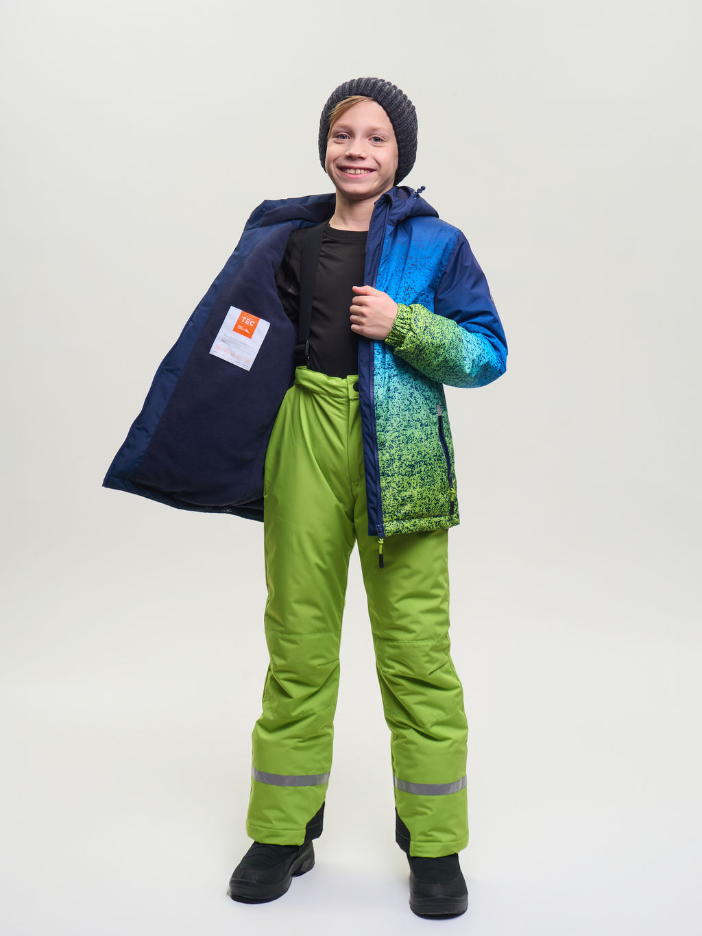 Наполнитель: 100% полиэстер, вес 200 г/м2 Брюки: материал верха 100% полиэстер с водоотталкивающей пропиткой, ветронепродуваемая и водонепроницаемая, «дышащая» трехслойная мембрана 5000/5000 с покрытием TPU.