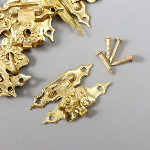 Замок металл для шкатулки золото + гвозд. набор 10 шт 1,9х3 см