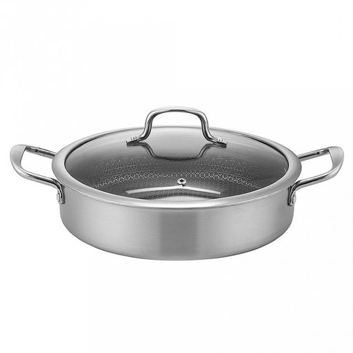 "Zeidan" Жаровня из нержавеющей стали, д24см, h6см, 3-х слойный корпус, индукционное дно, антипригарное покрытие с защитной сеткой, стеклянная крышка, металлические ручки, подарочная упаковка (Китай)