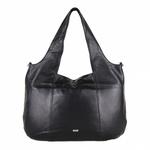 Вместительная модель, выполнена из натуральной  кожи.  Дополнена серебристой фурнитурой. Данная модель закрывается на молнию, носится на плече или в руке. В комплекте имеется ремень с регулировкой длинны и короткие ручки встроенные. Каркас полужесткий.
