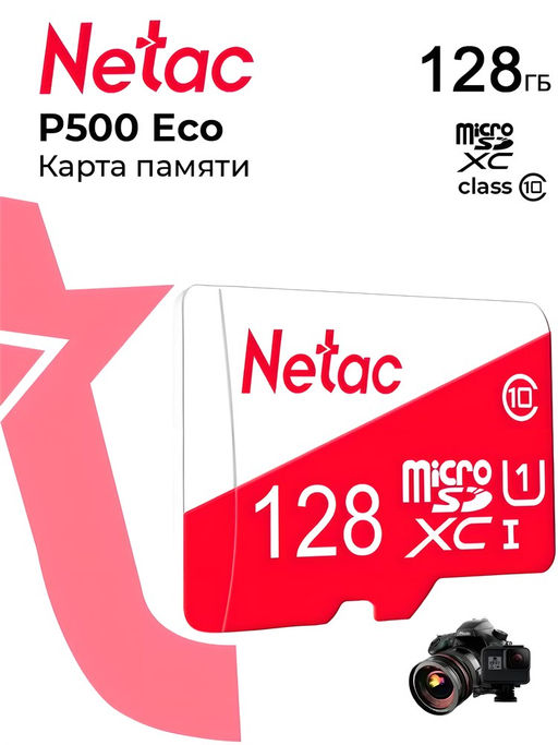 • Карта памяти Micro-SDXC 128Гб "Netac P500 Eco" Class10 UHS-I, без адаптера