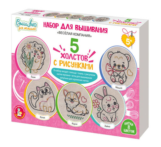 • Набор для вышивания "Вышивка на холсте. Веселая компания" 5 холстов (05837) 5+, "Десятое королевство"