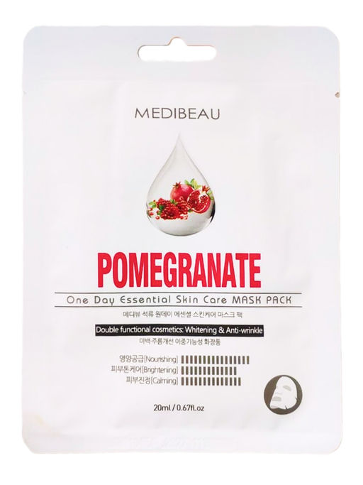 MEDIBEAU One Day Essential Skin Care Mask Pack Pomegrate это не просто маска, это мощное средство двойного действия. Она эффективно борется с признаками старения, разглаживая морщины и возвращая коже упругость. Благодаря отбеливающему эффекту, маска осветляет пигментные пятна и выравнивает тон кожи, придавая ей свежий и сияющий вид.