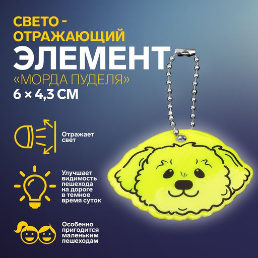 • Цена за 6 шт. Светоотражающий элемент «Морда пуделя», двусторонний, 6×4.3 см, МИКС