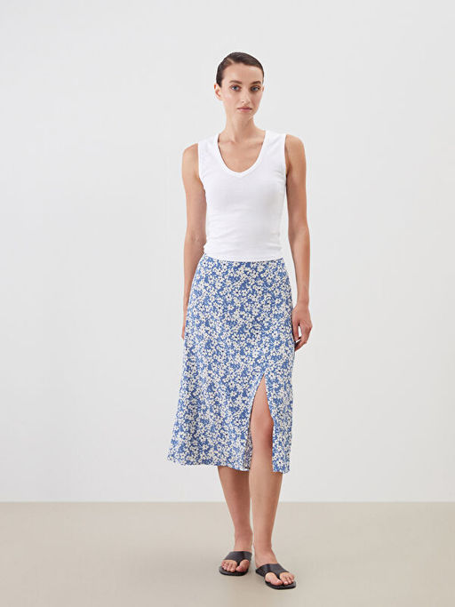 Beli Lastikli ?i?ekli Y?rtma?l? Etek