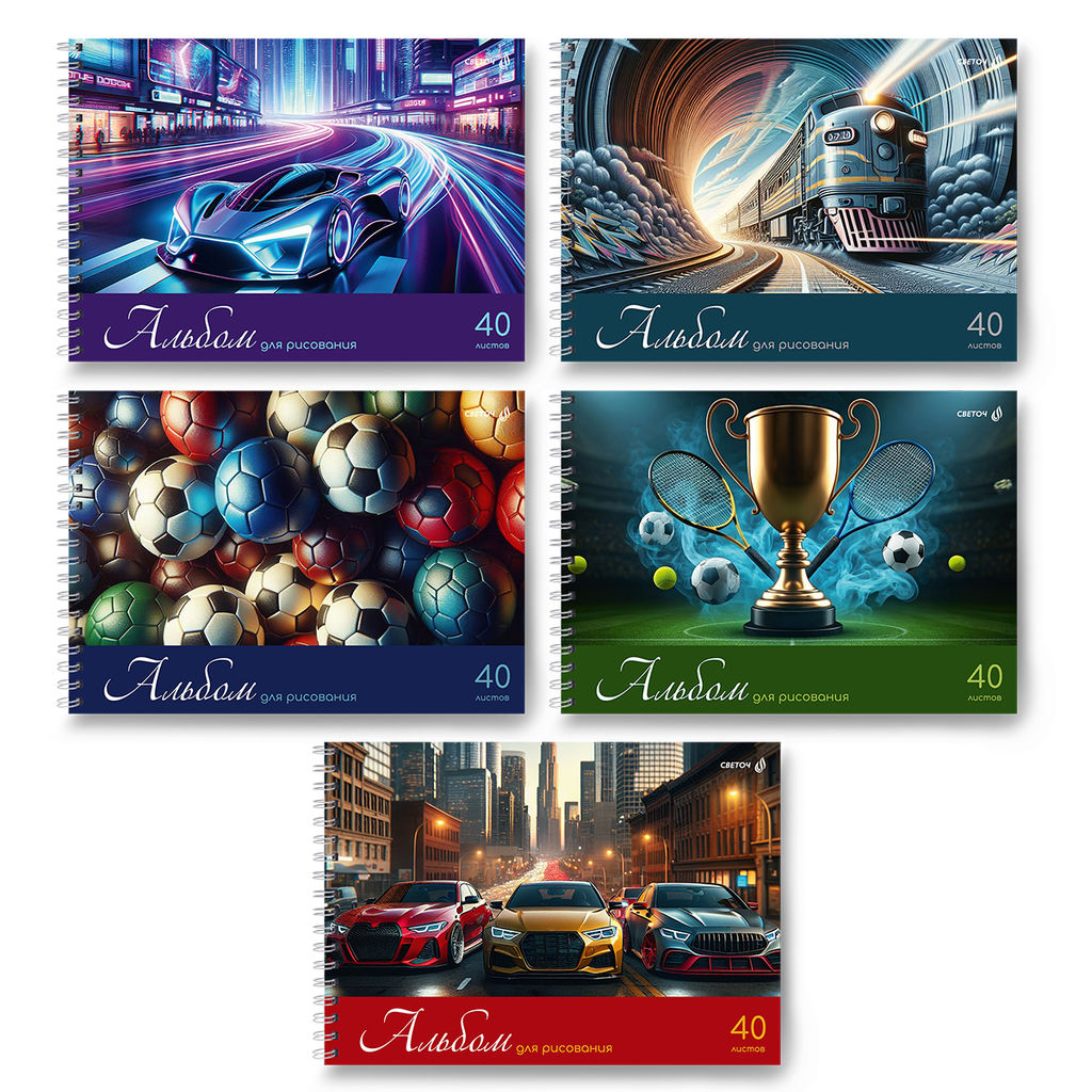 Светоч А233 Альбом для рисования, 100 г/м2 A4 29.5 х 21 см 5 шт. на гребне 40 л. 01620 Мир хобби