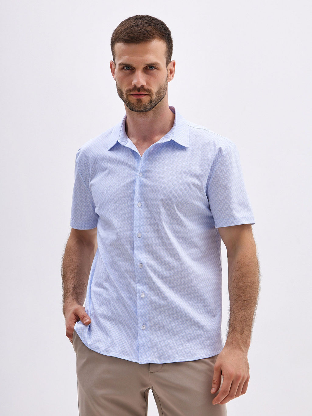 Рубашка мужская короткий рукав GREG G143-TD-LT4624 (голубой)
