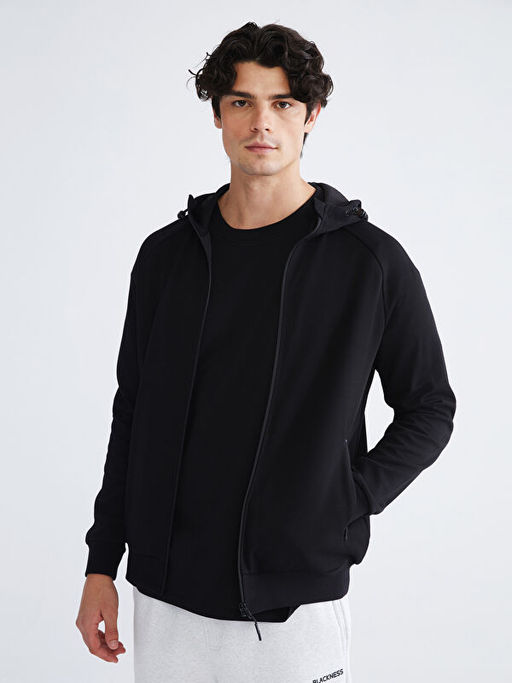 Kap??onlu Uzun Kollu Erkek Fermuarl? Sweatshirt