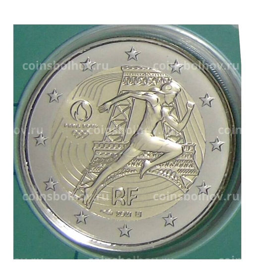 Монета 2 евро 2021 года Франция XXXIII летние Олимпийские игры, Париж 2024 (в зеленом блистере)