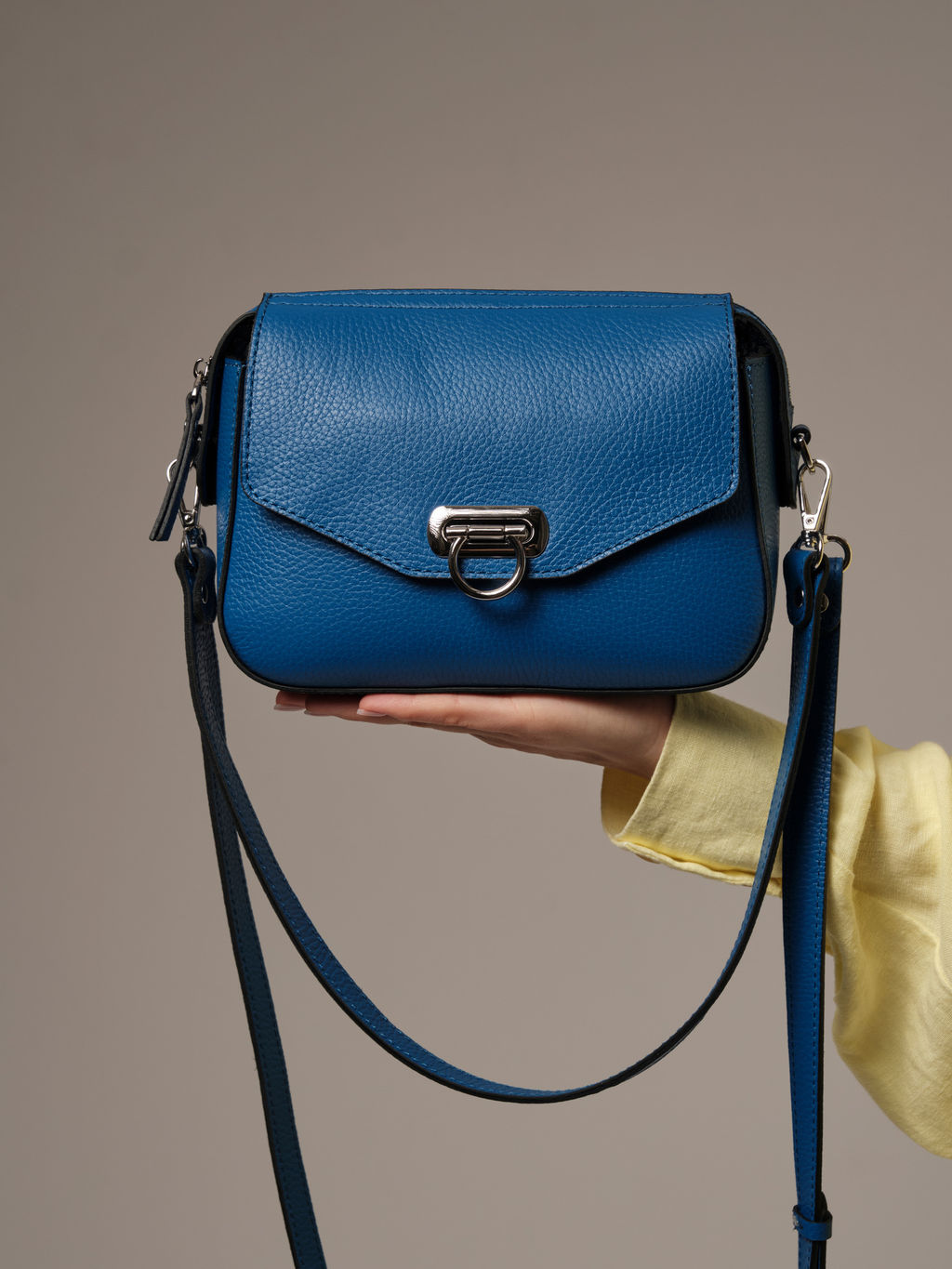 Кожаная сумка кросс-боди Azaro синяя гуашь - воплощение современного стиля и функциональности. Выполненная из мягкой натуральной кожи в насыщенном синем оттенке, она станет акцентом любого образа - от делового до повседневного. Идеальные пропорции и лаконичный дизайн подчеркивают утончённый вкус, а благородная текстура кожи делает аксессуар особенно выразительным. Качественная фурнитура из прочного металла с блестящим покрытием устойчива к к истиранию и повреждениям. Замок надёжно фиксирует клапан, придавая сумке элегантный и современный вид. Два ремня в комплекте обеспечивают максимум удобства: регулируемый длинный ремень позволяет носить сумку через плечо как кросс-боди, укороченный - на локте, плече или в руках. Кросс-боди Azaro синяя гуашь компактная и вместительная - внутри легко разместятся все необходимые мелочи: телефон, кошелёк, ключи и косметика. Плотная кожа держит форму, а аккуратные швы подтверждают высокое качество исполнения. Подклад выполнен из плотной водонепроницаемой ткани. Почему нужно купить именно её: * 100% натуральная кожа * Износостойкая фурнитура премиум-класса * Устойчивая к влаге подкладка из премиальной ткани * Два варианта ремней для разных стилей ношения * Элегантный минимализм, подходящий под любой образ Создайте утончённый акцент в своём гардеробе кожаная сумка Azaro станет вашим идеальным спутником на каждый день. -- Характеристики -- Цвет: синяя гуашь Материал: Натуральная кожа Бренд: Azaro Тип: Сумка на плечо Страна-изготовитель: Россия Высота, см: 18 Ширина, см: 22 Глубина, см: 9 Количество внутренних отделений: 1 Количество внешних карманов, шт: 2 Тип застежки: Молния Формат А4: не вмещает Высота ручек, см: 23 Длина плечевого ремня, см: 116 Вес товара, г: 570 Ручки: На запястье;На локоть;На плечо;Плечевой ремень Пол: женская коллекция Группа товара: Сумки