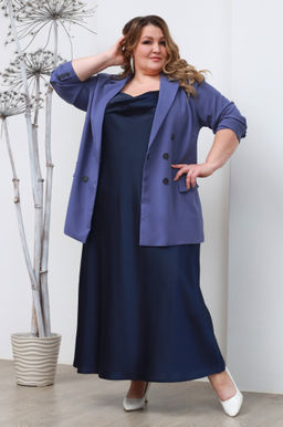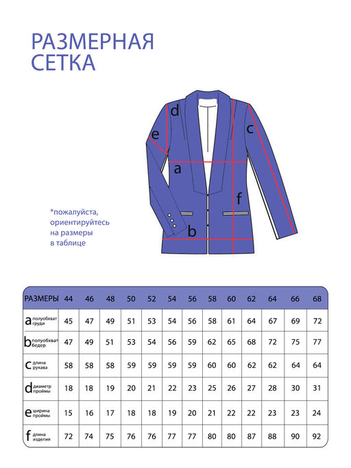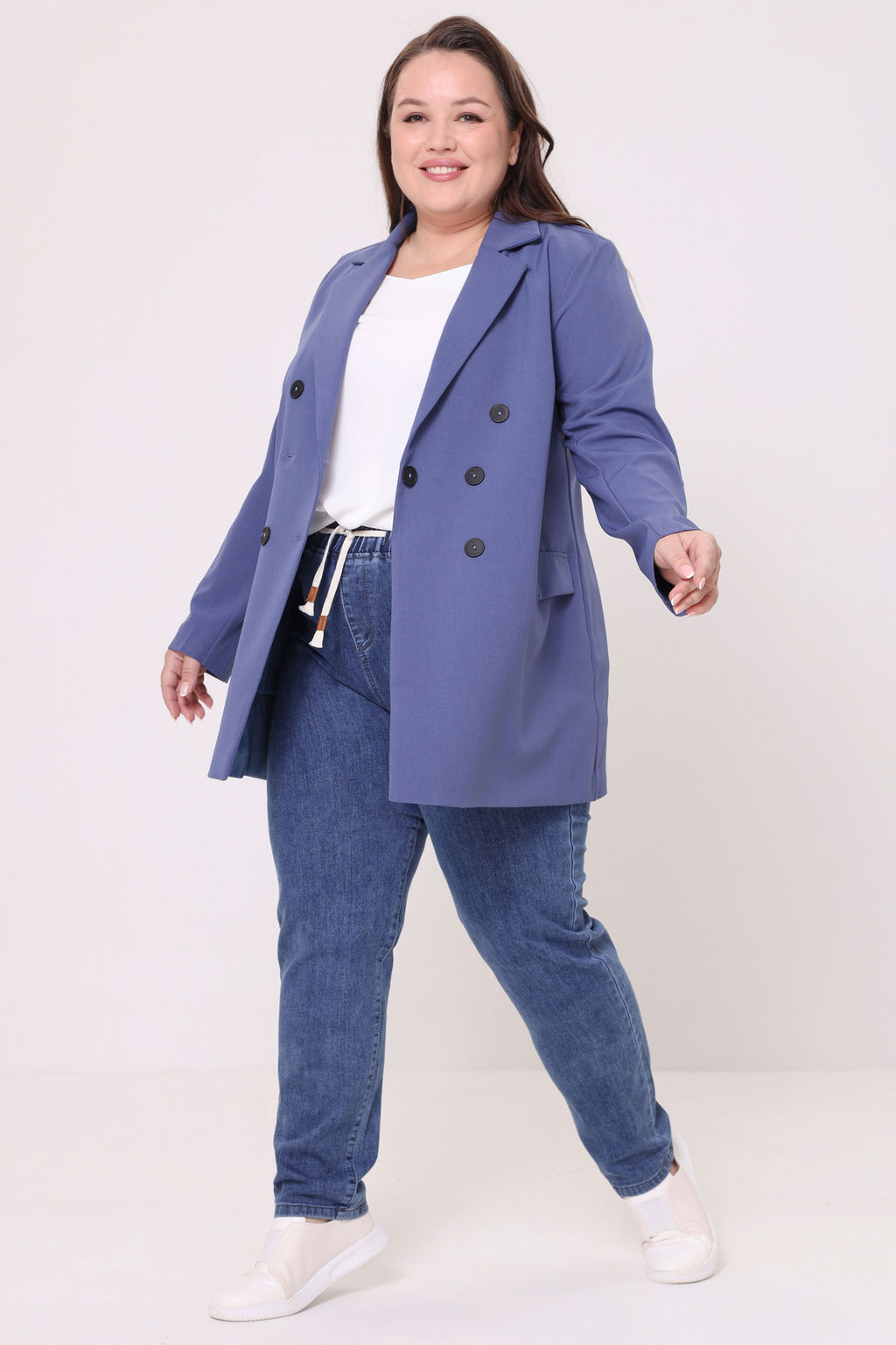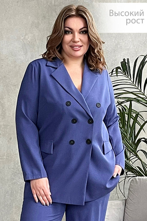 Стильный жакет прямого кроя из мягкого материала. V-образный вырез оформлен классическим отложным воротником с лацканами. Передние полочки дополнены атласной подкладкой, по спинке подкладка отсутствует. Рукава полной длины украшены декоративными пуговками. Аккуратные подплечники зрительно вытягивают силуэт и делают бедра визуально у?же. Вытачки на груди и по спинке способствуют оптимальной посадке по фигуре. Модель на двубортной застёжке, что добавляет модели практичности и оригинальности. По бокам декоративные клапаны. Этот модный жакет станет идеальным дополнением для повседневного стильного образа. Длина изделия 50 размера по спинке - 74 см. В каждом следующем размере длина увеличивается.­