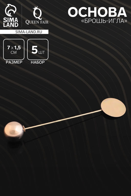 Основа Брошь-игла с шариком d=1.2 см (набор 5 шт.), L=7 см, площадка 1.5 см, цвет золото