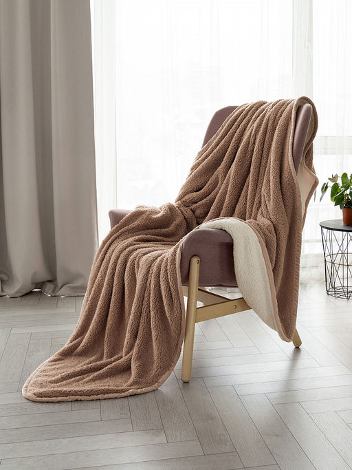 Уютный и тёплый плед из пушистой шерпы - приятный и нежный на ощупь. Мягкий плед прост в уходе, устойчив к усадке и износу. Двусторонний дизайн позволяет сочетать его с различными хроматическими палитрами в интерьере. Внутренняя часть имеет молочный оттенок, а внешняя окрашена в теплый бежевый тон, что делает расцветку пледа универсальной. В вашем доме появится предмет интерьера, который впишется в любое пространство и добавит уюта за счет своей фактуры.