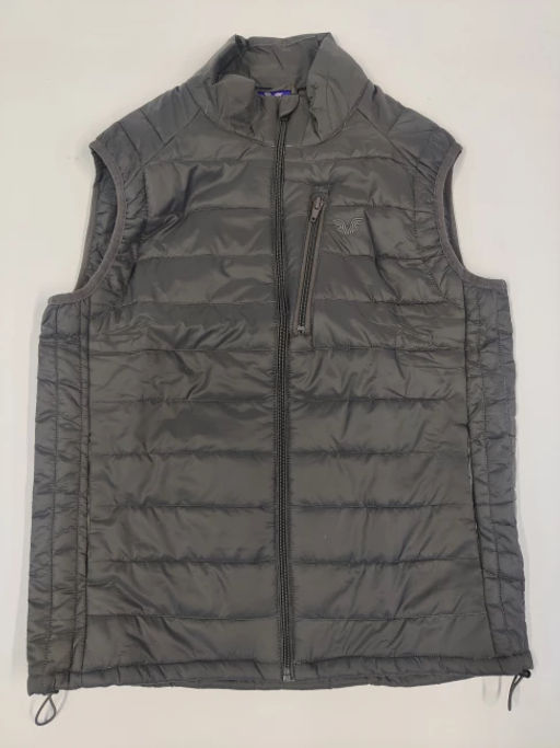Мужской жилет на молнии. Прочная ткань, из которой изготовлен жилет, водонепроницаема и не деформируется благодаря своей прочной структуре. Жилет обеспечивает защиту от ветра, а водоотталкивающие свойства ткани защитят вас от намокания в дождливую погоду.