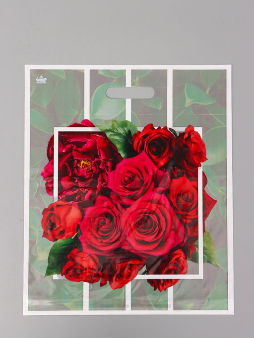 • Цена за 50 шт. Пакет подарочный Розарий полиэтиленовый с вырубной ручкой, 45?38 см 55 мкм